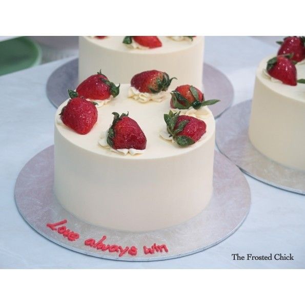 The Frosted Chick’s Strawberry Supreme Cake uses vanilla from Madagascar, which provides a more authentic flavour to the sponge cake.It is layered with fresh cream, fresh strawberries and 100% pure maple syrup, then frosted with swiss meringue buttercream with more strawberries placed on top. There are 4 options you can choose from for the size of your cake: 6″ shorter cake for 5-8 pax, 6″ taller cake for 8-12 pax, 8″ and 10″!