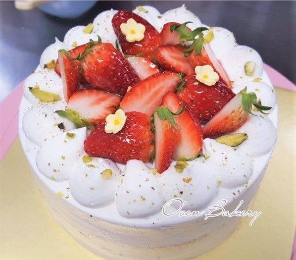 Oven Bakery’s Strawberry Shortcake is made up of vanilla sponge, whipped cream and fresh strawberries. It is then topped and finished with beautiful decorations. You can choose to order your cake in 5″ or 7″.