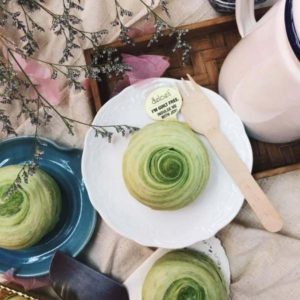 Pandan mooncakes? Yes please! Spiral pastry mooncakes are usually stuffed with yam and deep-fried, but not these. The flaky pastry consists of a lotus paste filling made with diabetic-friendly sugar substitute maltitol sweetener and fresh pandan juice.