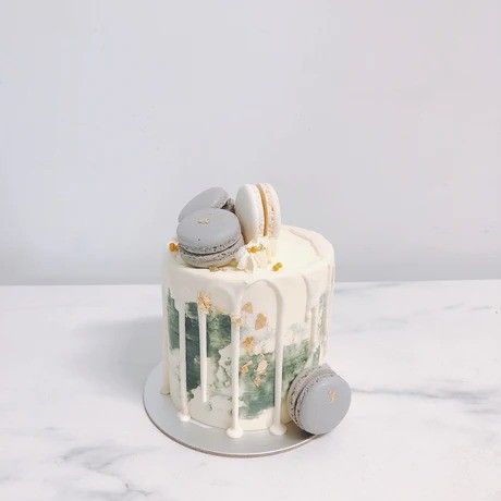 Done by Honeypeachsg, their Water Color Gray X Drips Cake , 4" Classic is