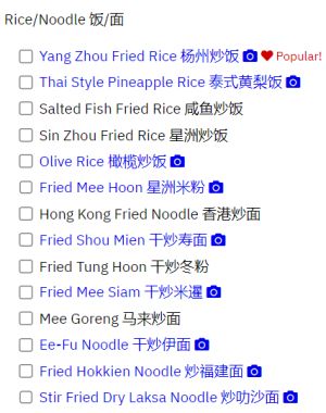 For each category, there is a wide selection of choices to choose from. For instance, take a look at the choices provided for Rice/Noodle Category!