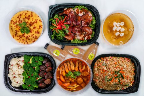 Moving on to a slightly more affordable option, we have this set by QQ catering which costs $19.88 per pax. Do take note that there needs to be a minimum of 10 pax. You can expect dishes such as Breaded Fish Fillet with Cheesy Mayo, Shan Dong Garlic Roasted Chicken and more! Also, a whole chicken is usually served on to represent family togetherness. As chicken is high in protein, some believe that chicken during the new year also represents rebirth! Free 10x Milk Tea (L) for the first 10 orders only!