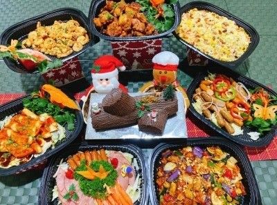 Like Stamford Catering, Intercontinental Catering has plenty of options for you to choose from. They have 3 bento options, a mini tea party set, 3 family party sets, and a premium executive bento set. Their most popular one would have to bet the Christmas Family Party Set C, which is a 9-course meal that comes with spaghetti, cold cuts, chicken, salmon, and much more! It even comes with a chocolate log cake for a Christmas-y end to your meal.