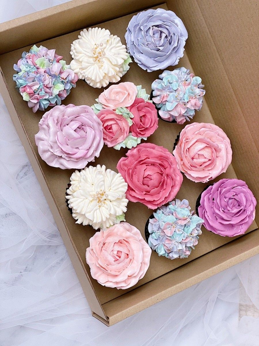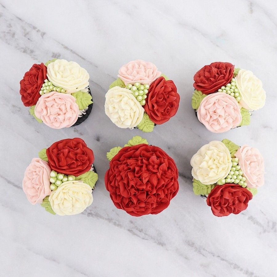 Tiny, beautiful, and super adorable! These Flora Cupcakes are piped with so much detail, your mum will definitely love them. Choose either boxes of 6 or 12 cupcakes, each set comes in a different colour schemes from pastel purple/pink to bold and beautiful red/pink. Each set also comes in different petal designs and combinations, so you have the freedom to choose which design speaks to you the most!