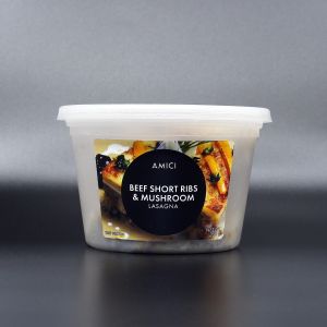 As seen in the picture, their Beef Short Ribs & Mushroom Lasagna has pulled braised Short ribs with Ragout of wild mushrooms with fresh herb truffle mornay sauce.