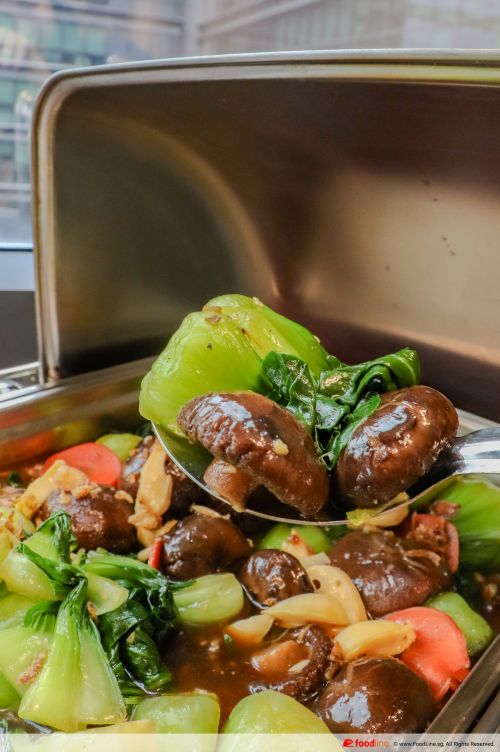 This dish is a delightful symphony of flavours and textures. The Shanghai greens are meticulously prepared, retaining their vibrant colour and crispness, while the earthy mushrooms and tender Pacific clams add depth to the ensemble.