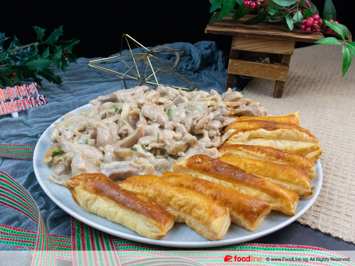 Basically, deconstructing food means dismantling the food down to its component parts. The “filling” consists of boneless chicken, soy sauce, sour cream, mushrooms, and spring onions. The chicken was perfectly cooked, maintaining its tender and sweet flavour. The puff pastry sticks were my favourite! They were buttery and flaky. Dipping them into the creamy and savoury sauce made them extra shiok to consume. To be honest, I could probably eat them plain because they were THAT good.
