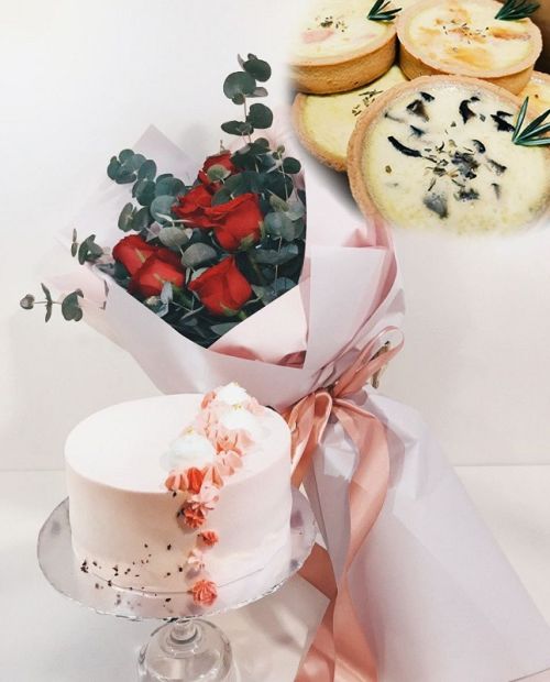 This 6" Signature Cake + Rose Bouquet + Artisanal Quiche Bundle, created in collaboration with Flora Artisan, is the perfect way to show your love and appreciation. The bundle includes a 6" Divine Artisan Signature Cake, a beautiful floral bouquet with 9 roses by Flora Artisan, and an artisanal quiche bundle. The signature cakes require an order lead time of 3 days and will come as per picture excluding the ornaments at the side on the cake board. Any special messages or notes indicated during checkout will be written on a separate card. Make your loved one's day special with this delightful bundle for just $140.