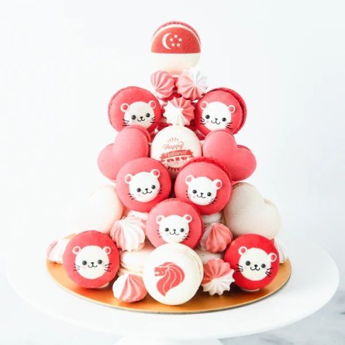 Celebrate Singapore's 58th Birthday with this stunning masterpiece from AnnaBella Patisserie. Combining elegance and patriotism with 44 meticulously crafted macarons, each delicate macaron features a burst of flavors with its crunchy texture. Adorned with vibrant red and white hues, it'll be a delectable feast for your eyes and mouth, the perfect way to express your pride and joy in being a Singaporean!