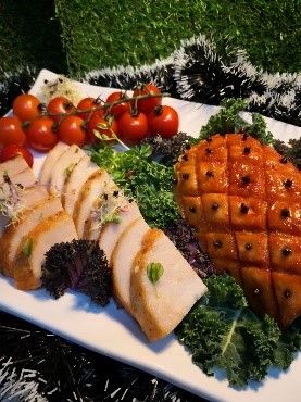 Indulge in the festive spirit with Brightaste Food this holiday season. Their Christmas Mini Buffet is a delightful offering, priced at $41.00/pax, inclusive of a tantalizing platter and a delectable log cake. This feast offers a generous spread of 7 courses, with one of the standout highlights being the Christmas Platter. Among the 7 courses offered, the Christmas Platter stands out with its trio of Honey Baked Ham, Chicken Picnic Ham, and Cocktail Sausages, perfectly complemented by a Cranberry Sauce. This platter adds a touch of luxury to your Christmas feast, combining a medley of flavors and textures that capture the true essence of the holiday season.