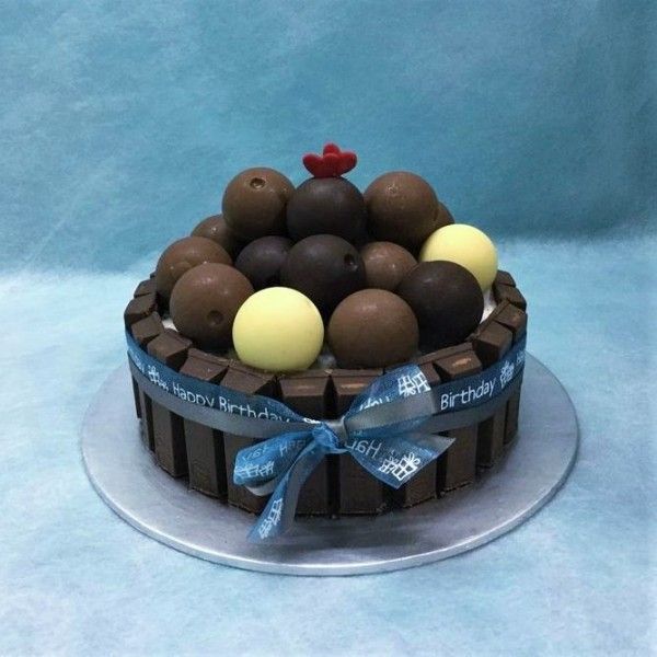 and no sponge cake. Finishing off by lining it with Kit Kat Chocolate Bars and assorted Chocolate Truffles.