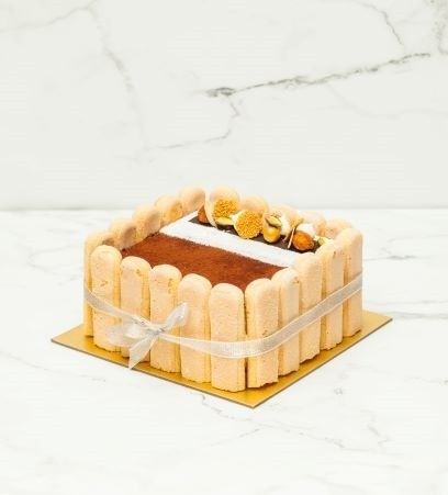 The Connoisseur Concerto’s Tiramisu is an irresistible cake with layers of mascarpone cream and house-dripped coffee ladyfingers. It is then finished by sieving rich tiramisu powder to create the beautiful waves as seen on top of the cake. Get your tiramisu square cake in only 1 size - 7.5″ by 7.5″ at $60.