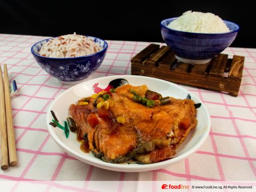 This is a juicy, flaky and delicious plate of Teriyaki Grilled Salmon! The salmon is packed with a balance of sweet and savoury flavour! Also, the salmon is super fresh, the interior is super soft and the sauce is well accompanied by the rice. On top of that, it is also served with green beans, corn and carrot which contribute sweetness to the overall taste of this dish!