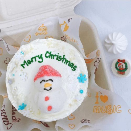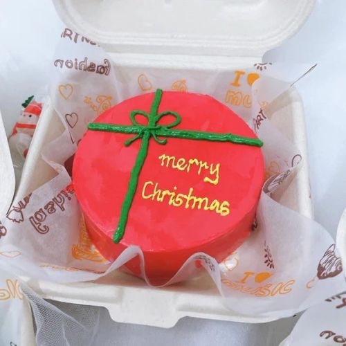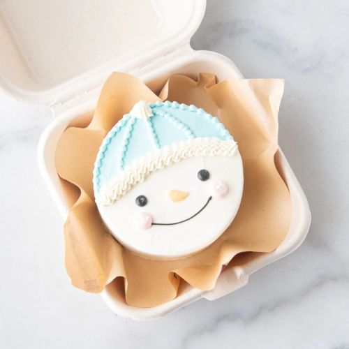 Who doesn't adore snowmen? Check out our Snowman Bento Cake – it's frosted with smooth buttercream, adorned with a cute snowman marshmallow, sprinkles, and a handwritten "Merry Christmas." These trendy bento cakes are perfect for gifting to friends and adding a tasty surprise to your Christmas season.