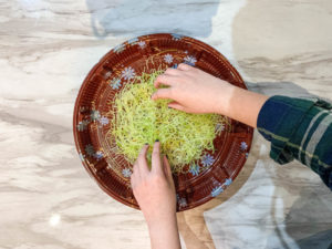 First, lay out the “grass”, we have used cucumber for this.
