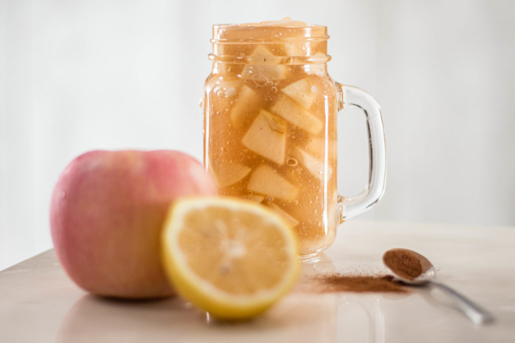 Step 1: To make the apple cinnamon sauce, slice your apples into cubes and squeeze half a lemon onto the sliced apples and mix.