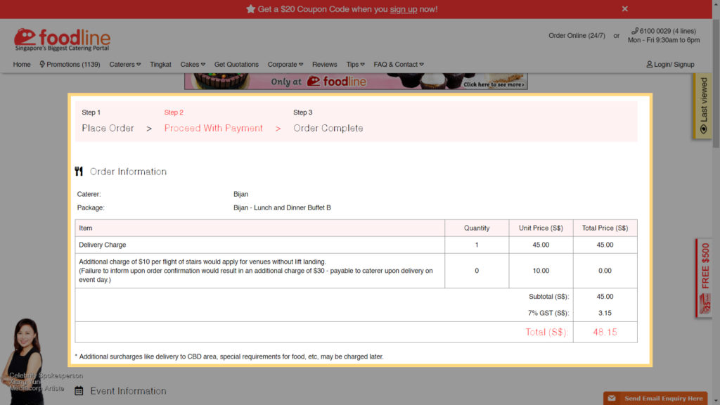 And also, don’t forget to key in your details in order to receive FREE $500 Food Vouchers for future orders placed on FoodLine! 😊