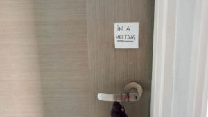 If you are working in your room, you can place sticky notes at the door. Like “In a meeting”, or “Busy” or “Napping”. Not that I take this perfect opportunity to nap on the job, but for those that do, there you go. This way your family will know if it is a good time to ask you to scratch their backs or change the toilet rolls.