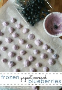 - Dip each blueberry into the yogurt and swirl until the blueberry is nicely coated with yogurt