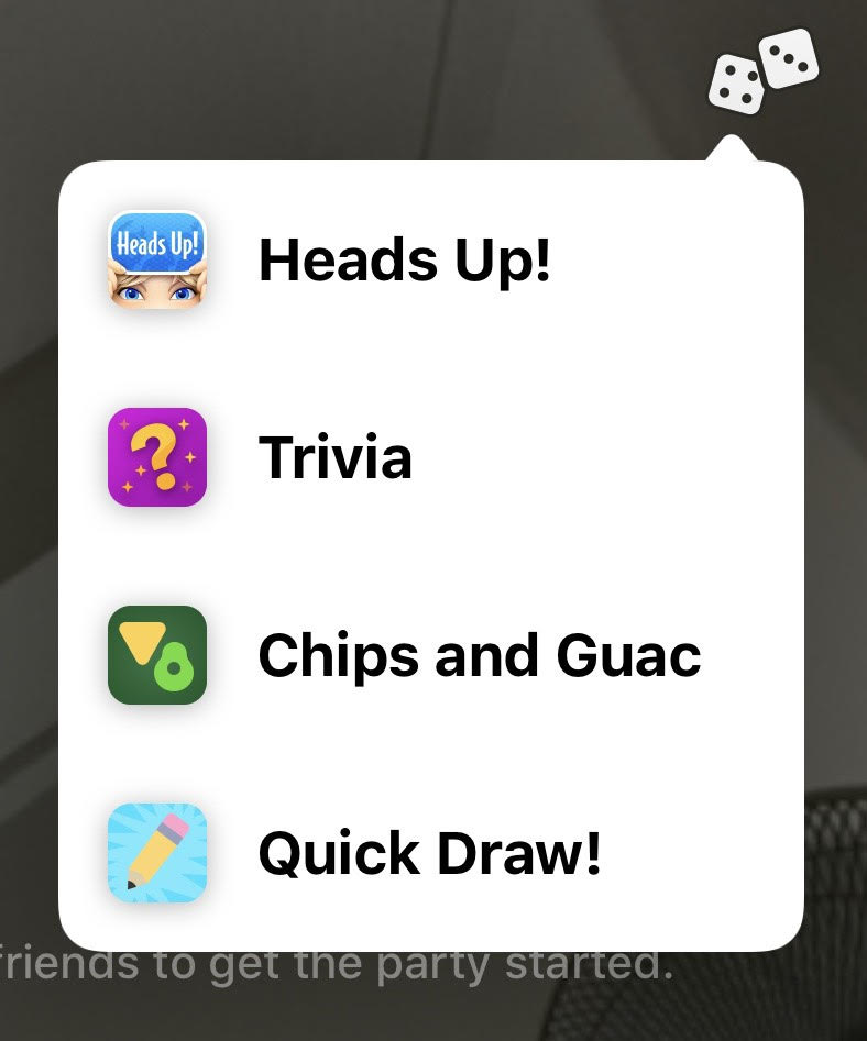 In a Houseparty call, you can play some games with your friends, like Heads up!, Trivia, Chips and Guac and Quick Draw!