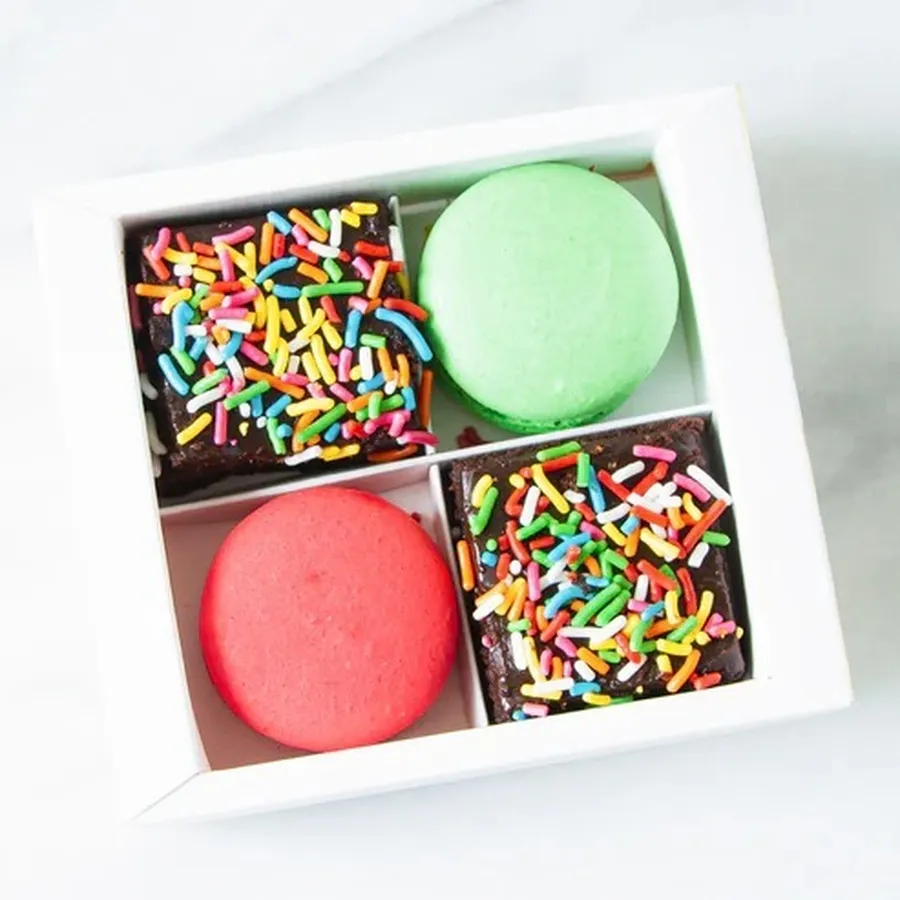 Nice macarons indeed. Not so sweet. Great flavors. The card is so cute and the back of the card has all the flavors. Items was ready when I went to pick up.