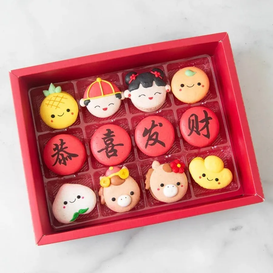 Celebrate the Chinese New Year in style with our 4in1 Lucky Girl Macaron set, featuring four beautifully crafted macarons designed with charming girl motifs that embrace the spirit of the festive season. Each macaron is adorned with intricate details, reflecting the Year of the Snake theme, making them a delightful addition to your holiday celebrations. These treats not only serve as delectable confections but also as joyful decorations to enhance your festive ambiance. Ideal for sharing with family and friends, the 4in1 Lucky Girl Macaron set makes a perfect gift or a sweet indulgence for anyone looking to add a touch of luck and joy to their New Year's festivities.
