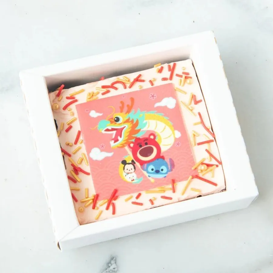 This Chinese New Year, we are bringing you a delicious treat for your tastebuds, every bite brings you joy and happiness and brings a smile to your face. Introducing our Disney New Year Petite Peach brownie, featuring Disney Tsum Tsum characters. It is a delicious experience you can look forward to!