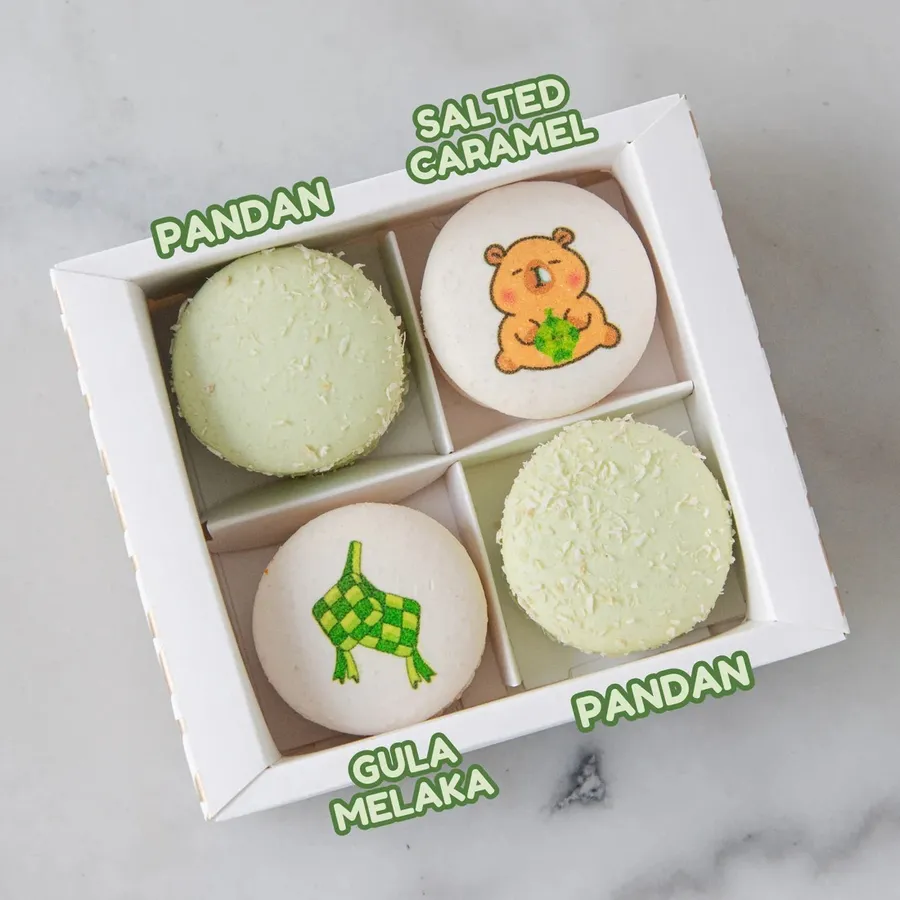 Celebrate the joy of Hari Raya with the Lunar Blessings 7pcs Treasure Set! This charming set includes seven beautifully crafted macarons, each one bursting with festive flavors and vibrant colors. Among the delicious treats, you'll find two adorable human character macarons, adding a personal and heartwarming touch to your Raya celebrations. Perfect for gifting or sharing with loved ones, this set brings a blend of sweetness, joy, and festive spirit, making it the ideal treat for this special occasion. Wishing you an Eid filled with love and happiness, one macaron at a time!