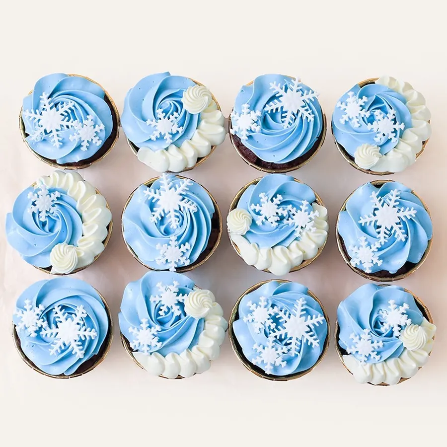 Step into a frosty fairytale with our Winter Wonderland Cupcakes. Decorated with swirls of icy blue and white buttercream topped with delicate snowflakes, these cupcakes are perfect for Frozen-themed parties, winter birthdays, or holiday celebrations.
