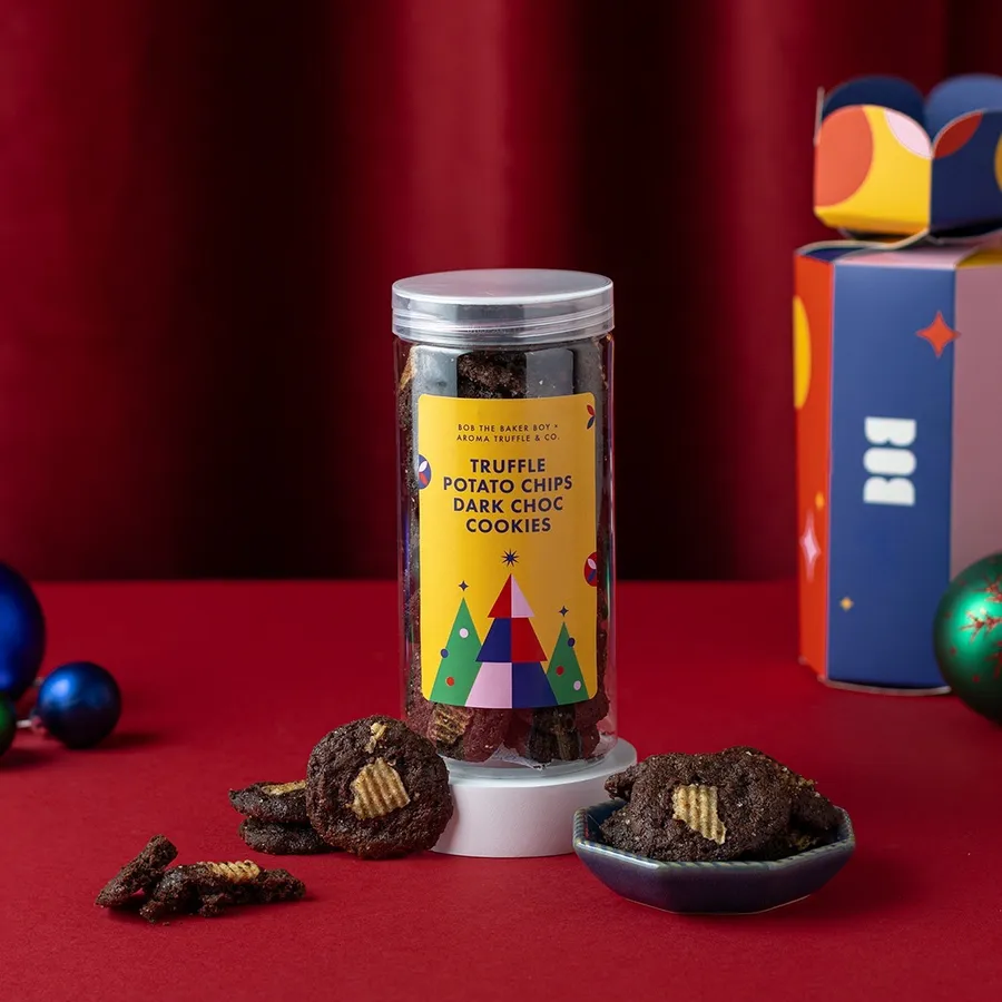 NEW! An innovative creation made in collaboration with Aroma Truffle & Co. These cookies combine dark chocolate, earthy truffle aroma, and crunchy potato chips for a truly gourmet experience. Distinctive and indulgent, they’re a luxurious gift for those who appreciate modern festive flavours.