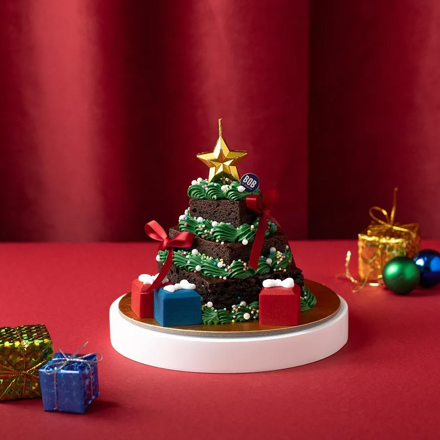Over 1,000 sold! An elegant statement piece for the festive table. The Regular Christmas Brownie Tree features layers of rich, moist brownies adorned with silky green buttercream and festive ornaments. Finished with a golden star, a Merry Christmas topper, and decorative ribbons, this handcrafted Christmas cake makes a luxurious centrepiece for gatherings or gifting.