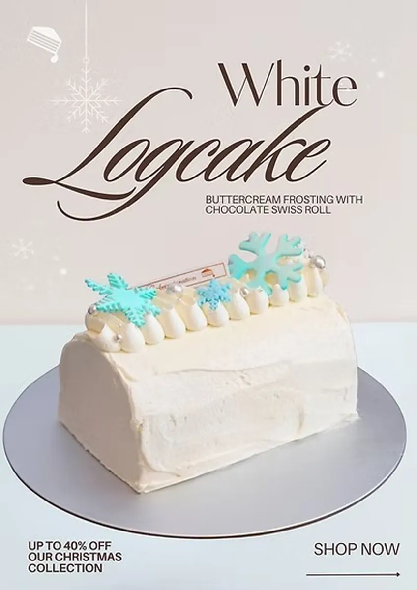 White Log Cake – A soft chocolate Swiss roll layered with light buttercream frosting, finished in a snowy white log style that’s simple, classic, and full of Christmas charm.