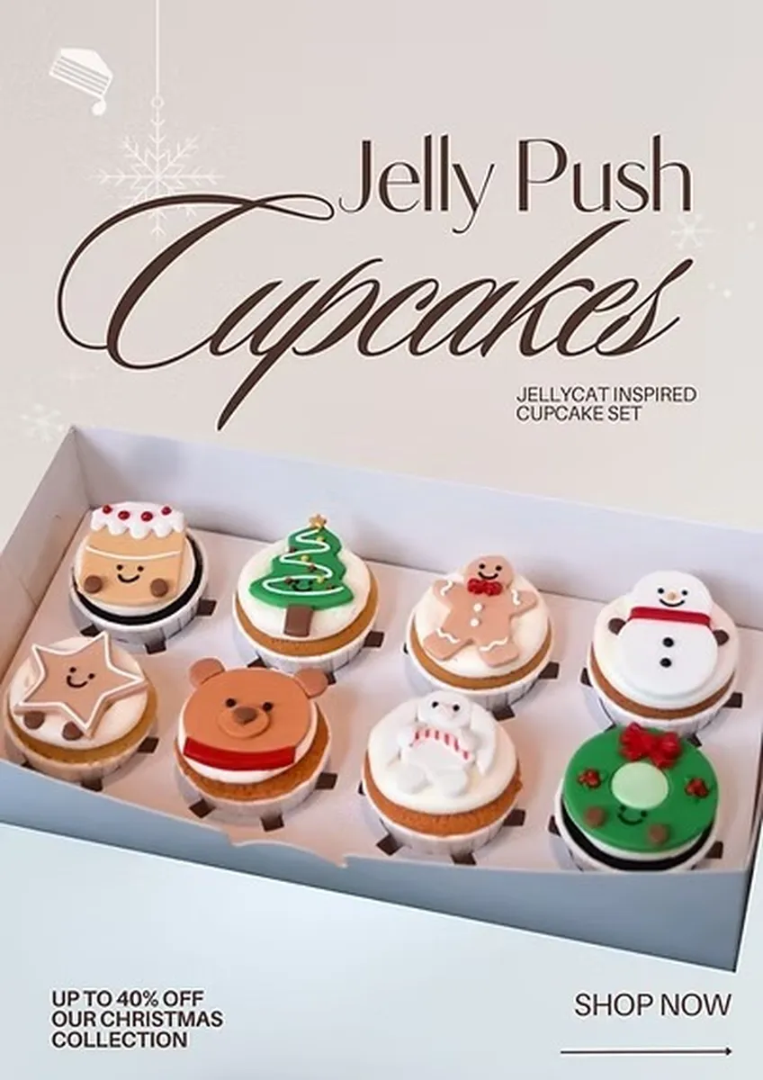 Jelly plush Cupcake Set – A delightful set of 8 Jellycat-inspired cupcakes, each lovingly decorated with adorable festive designs — the perfect mix of cuteness and Christmas joy.