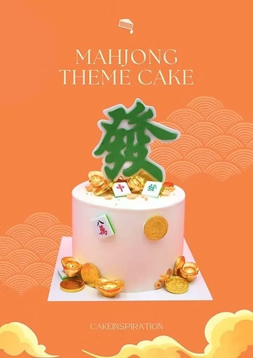 This festive cake features beautiful crafted mahjong tiles and colourful "Huat" topper character for good fortune.