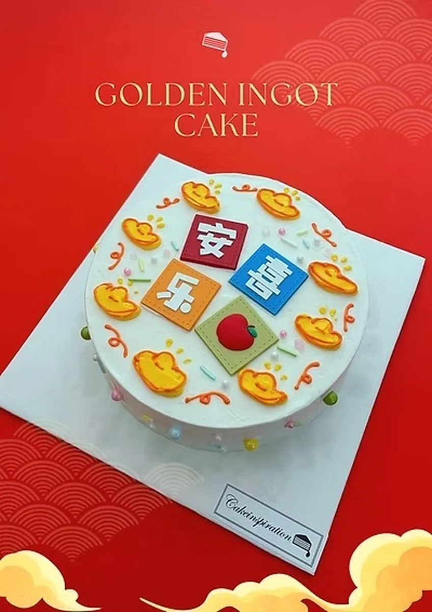 Adorned with gold ingots and coins topper, this cake radiates abundance CNY themed cake.