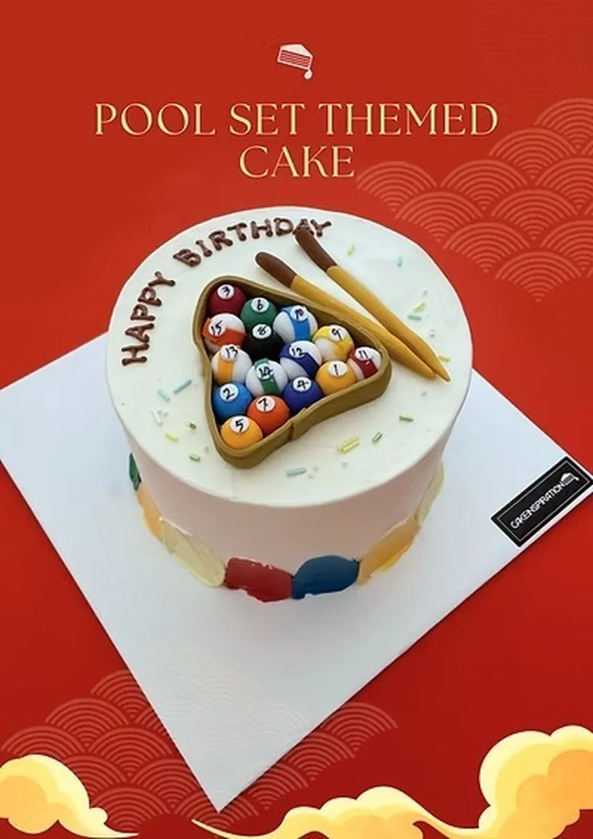 Featuring a centerpiece of pool set minimalist design CNY themed cake .