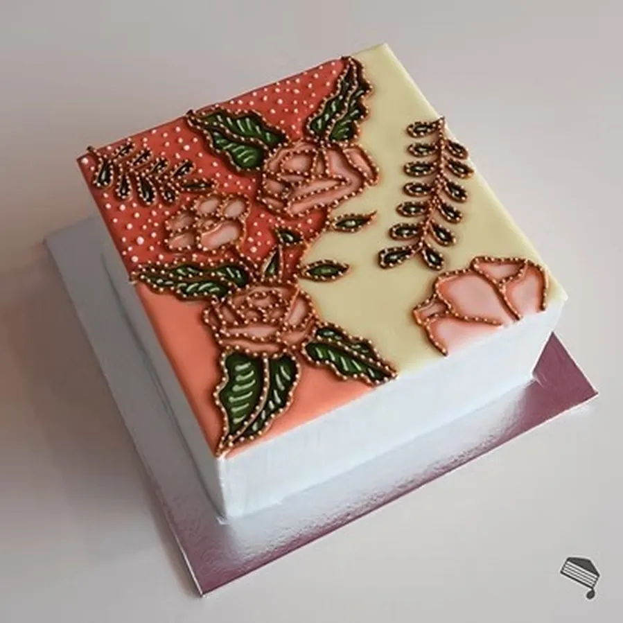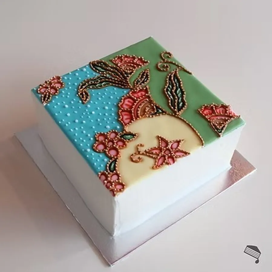 Hand drawn batik design -- sugee cake decorated with fondant and royal icing