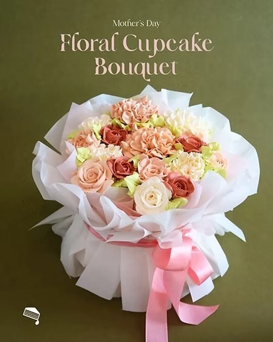Delight mom with our Mother’s Day Cupcake Bouquet—hand-piped buttercream cupcakes in rose, carnation, and blush tones, wrapped with a pink ribbon and topped with a “Happy Mother’s Day” crown. Perfect for Mother’s Day gifts or sharing.