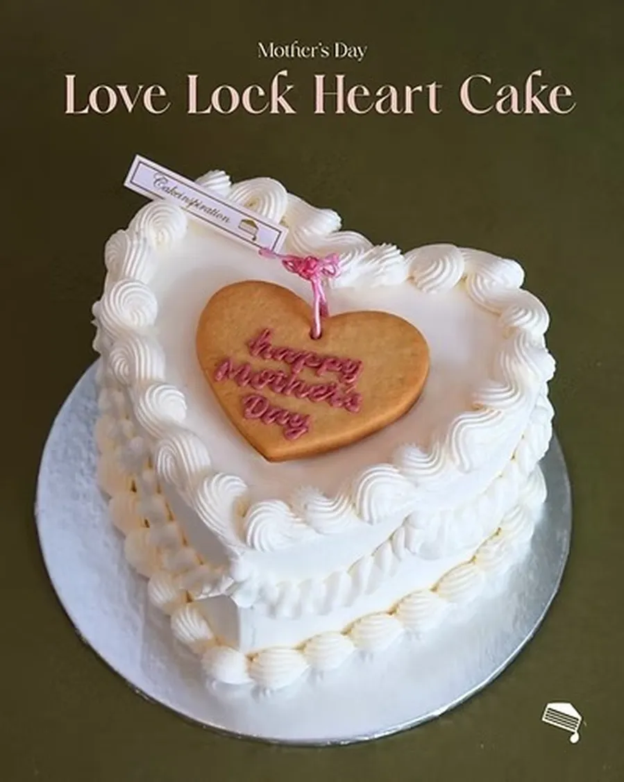 Celebrate Mom with a sweet and personal surprise! This heart-shaped cake is frosted in smooth white buttercream and topped with a special locket-style cookie. Lift the cookie to reveal a personalized photo and a “Happy Mother’s Day” message. Perfect for Mother’s Day brunch or any special moment with Mom.