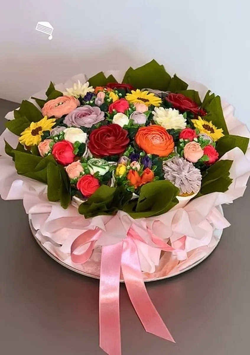 Surprise your loved ones with our stunning 19-piece cupcake bouquet, handcrafted to look like a blooming flower arrangement while being completely edible. Each cupcake is piped with delicate buttercream florals, making it a perfect blend of beauty and sweetness.
