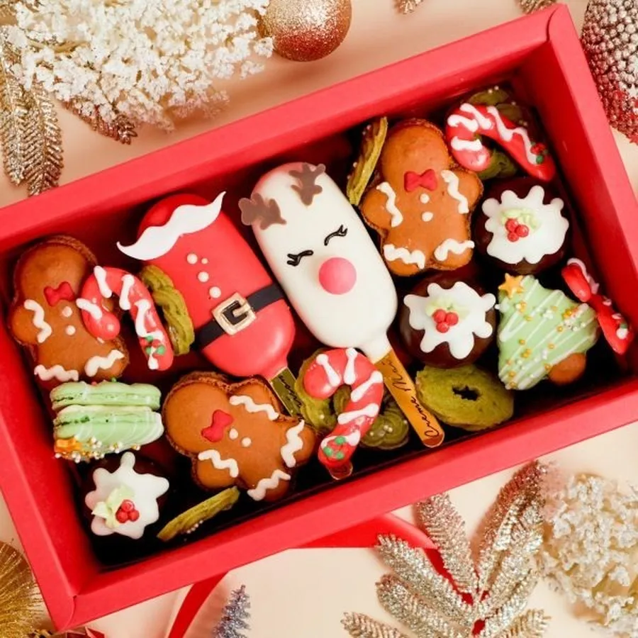 Bring a dash of holiday magic to your celebrations with our Christmas Dessert Box, filled with festive treats like Christmas tree macarons, Rudolph cake popsicles, Christmas pudding truffles and crisp butter cookies! Perfect for gifting clients or sharing with friends, this low in sugar Christmas dessert box is a delightful way to enjoy the holiday treats!
