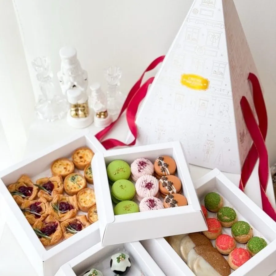 Spread the joy of Christmas with our festive gifting box, brimming with layers of holiday cheer. From velvety eclairs, fluffy cream puffs, and savory mini pies in bite sized pieces. Perfect for gifting to hosting potlucks, every bite is a merry little moment that captures the magic of the season!