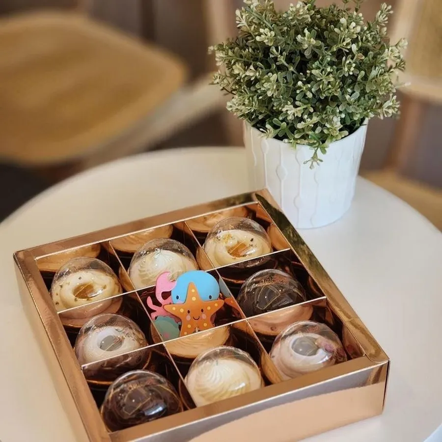 Chai: Immerse yourself in the warm, spiced harmony of chai, perfectly balanced with sweet notes, intricately wrapped in a gluten-free, egg-free, and dairy-free macaron.