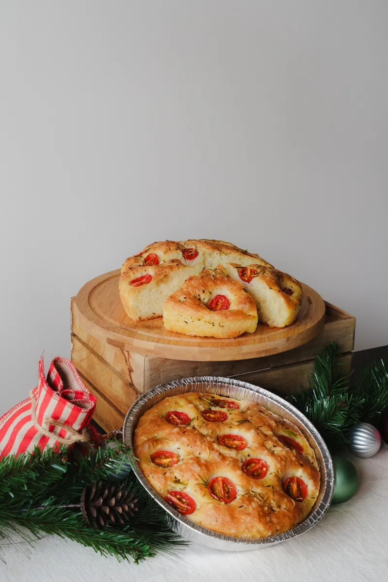 This holiday season, vegans rejoice as we add a new savoury tantilising Garden Foccacia bread into our festive menu. Delcie’s healthy twist on the classic Italian flat bread using the most traditional recipe with extra-virgin olive oil, cherry tomatoes, then a dust of rosemary leaves on top.