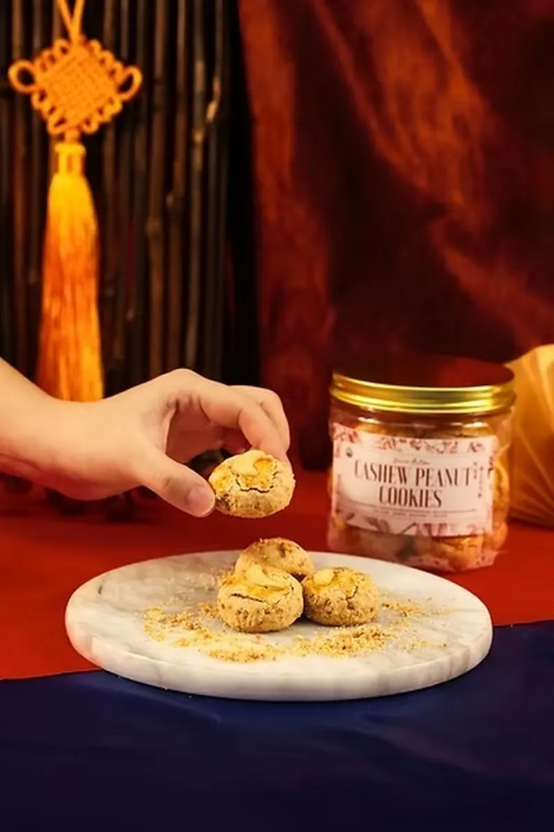 Introducing new cookies!! A cherished Lunar New Year classic, our Cashew Peanut Cookies are lovingly baked using time-honoured techniques. Each cookie is rich with the fragrance of roasted peanuts, finished with a golden cashew nut on top, delicately crumbly and melt-in-the-mouth.