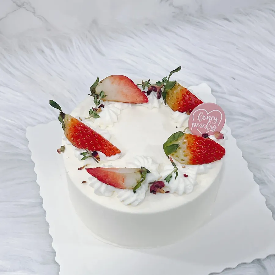 This cake is one of our most popular - whether it be with adults or kids! It is light, airy and the moist sponge cake frosted with fresh yet less-sweet white chocolate cream and topped with crunchy white chocolate biscuit ball bits and fresh strawberries slices! This serves incredibly well as an anniversary cake! If you're looking for an anniversary cake, whether it's to celebrate your 30th anniversary with your husband or wife, or for a company anniversary, we're more than confident that this anniversary cake will do the job perfectly!