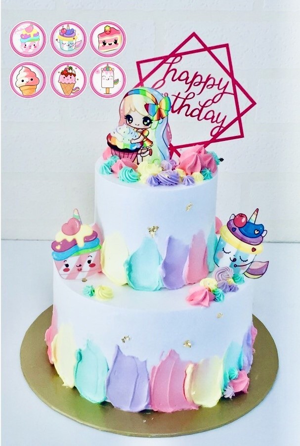Cute Donuts Unicorn Tier Cake & Cupcakes