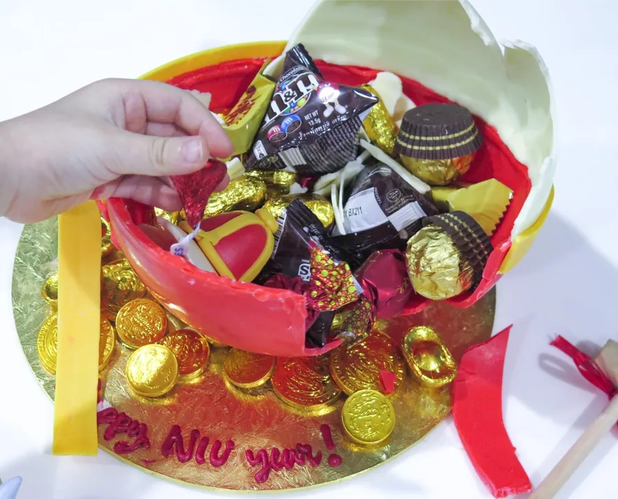 Break into a fortune by smashing this chocolate bombshell pinata, revealing a special surprise within. Perfect way to welcome the year of the rabbit!