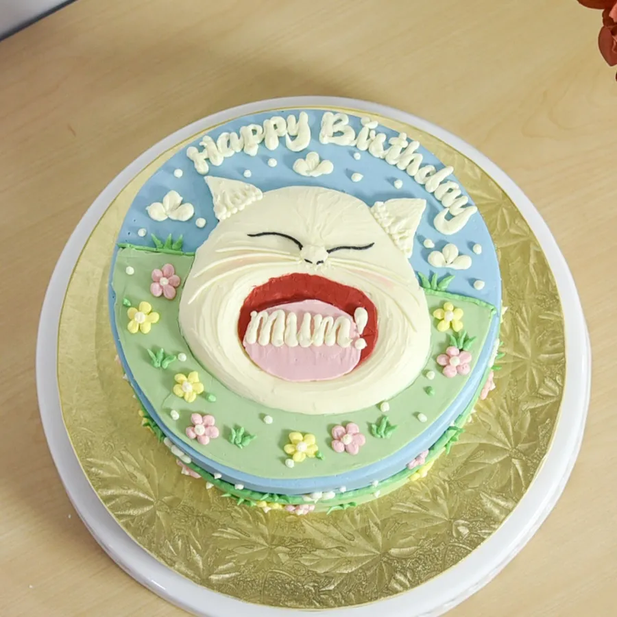 The best Mother's Day gift for the special lady who can do it all! Surprise mummy with a Funny Yelling For Mum Cake, featuring a cute cat calling for mummy to help them. Set against a handpiped floral garden for extra playful vibes. Perfect celebration treat for Mother's Day cake and birthday gift for mum!