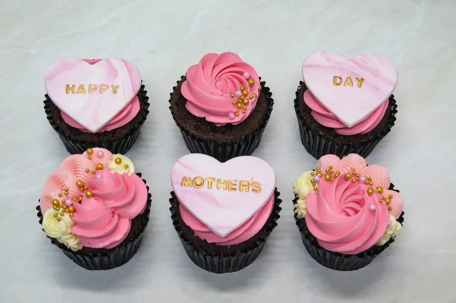 Surprise mommy with sweet pink and gold themed cupcakes. Only the best Mother's Day for mum! Checkout our Pretty in Pink Mother's Day bundle. Every order comes with a complimentary greeting card.